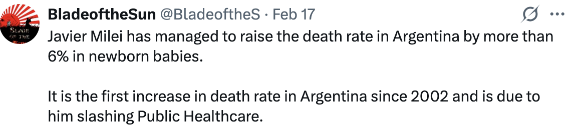 The trend matches David Seymour’s libertarian economic hero, Javier Milei, who just introduced 12 hour work days, restricts rights to protest, pay in food and lodging instead of money, and cuts to all types of leave entitlements