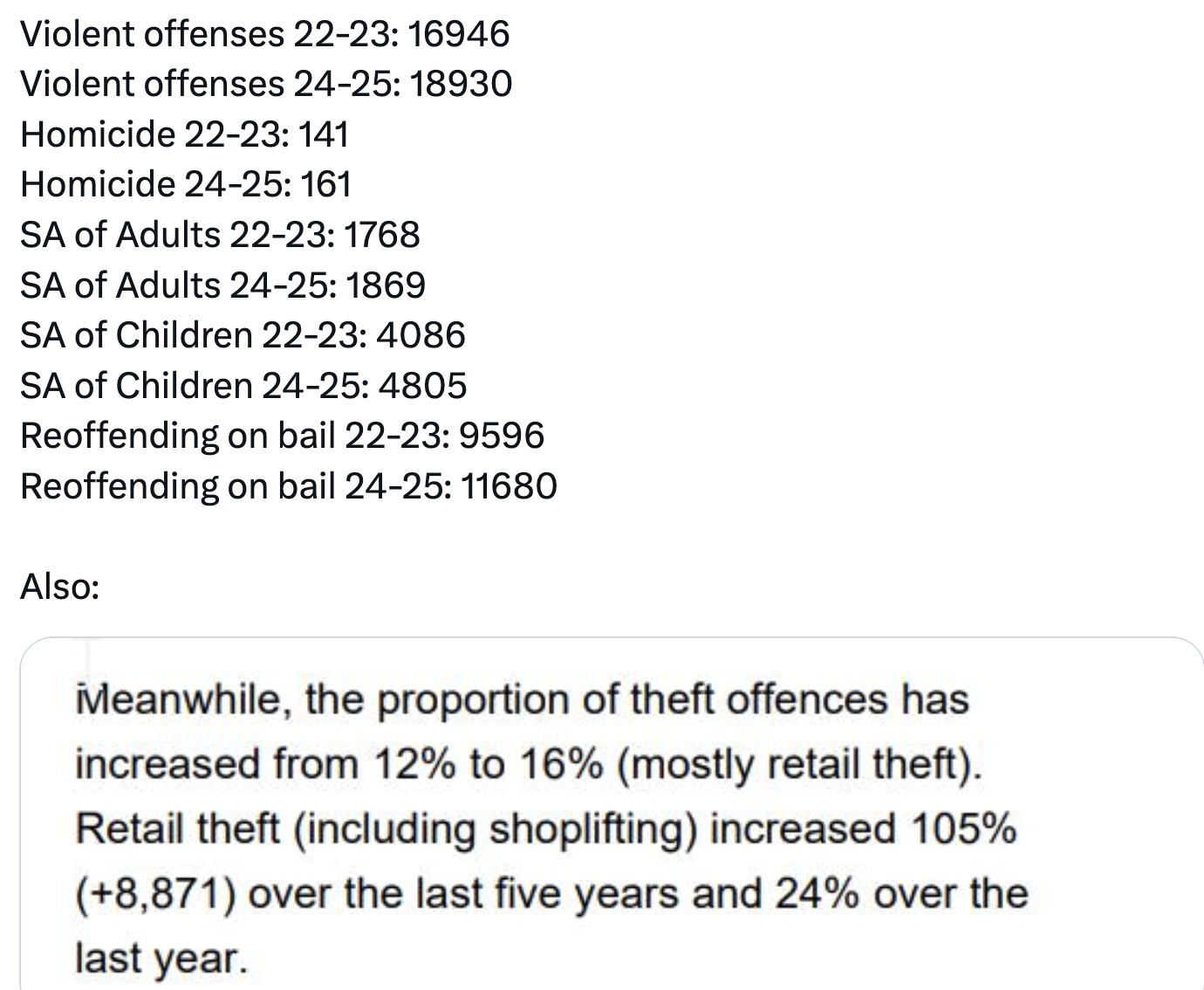 I have a sense it must be up even as police are pulling back from mental health calls, and failing to even look at thousands of retail crimes.