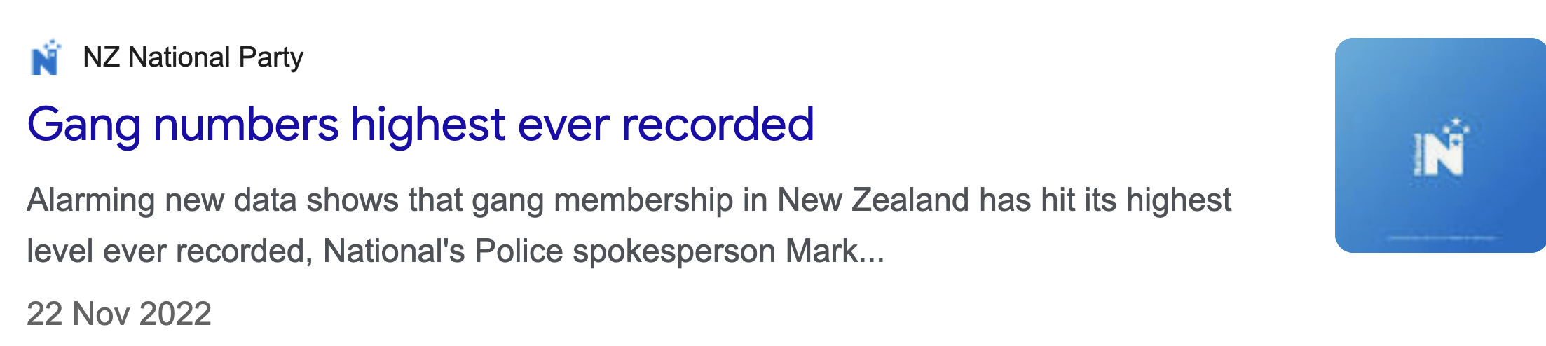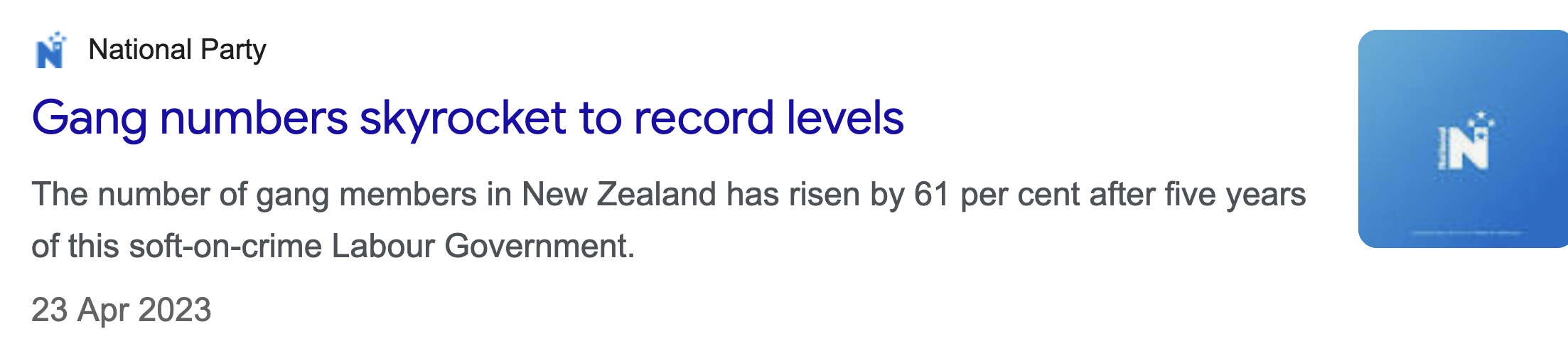 When National were in power, they used increasing gang numbers as “evidence” that Labour were soft on crime and soft on gangs.