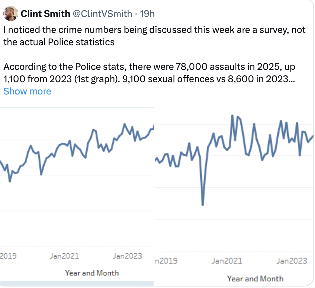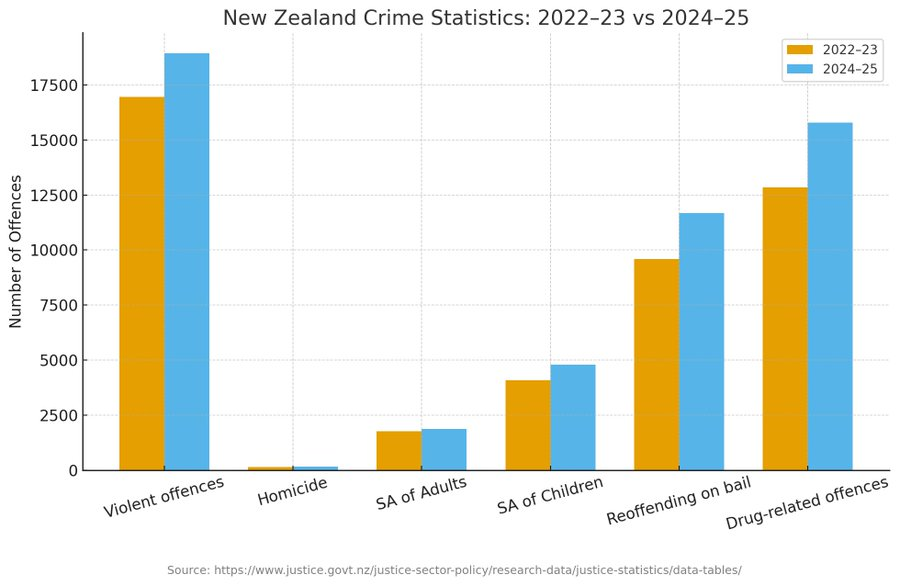 - And categories of serious crime are mainly all up according to MOJ data from October 2025.