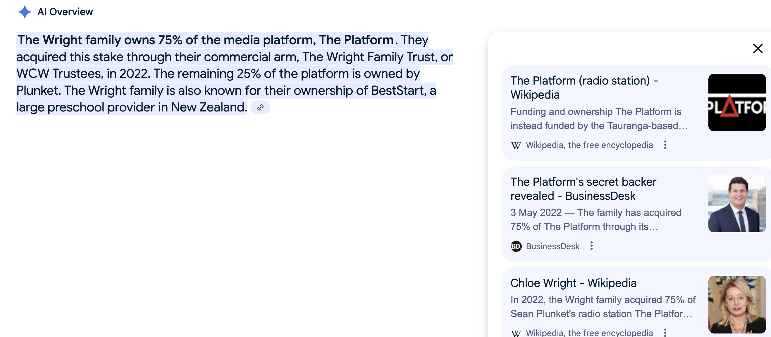 - Headlines suggest the Wright Family has divested itself from Sean Plunkett’s The Platform - extreme caution is needed on taking this on face value. Hear it in Plunkett’s own words in May.