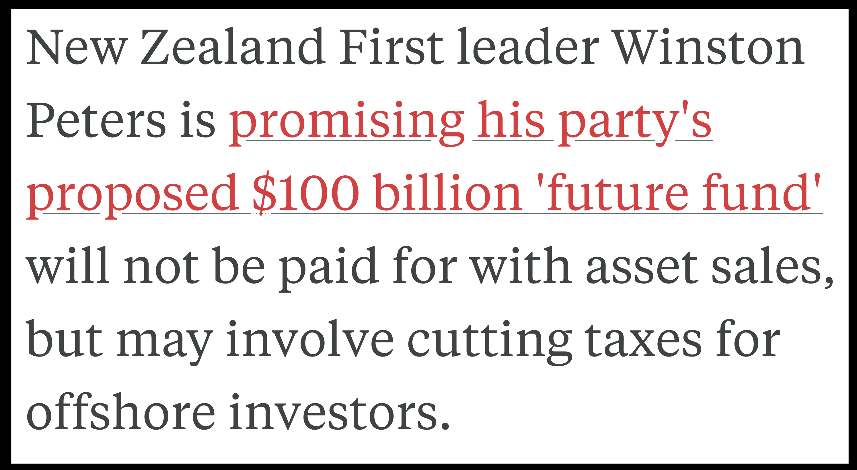 NZ First’s model is based on courting foreign investment and giving them taxpayer funded tax cuts/incentives to “invest in NZ”.