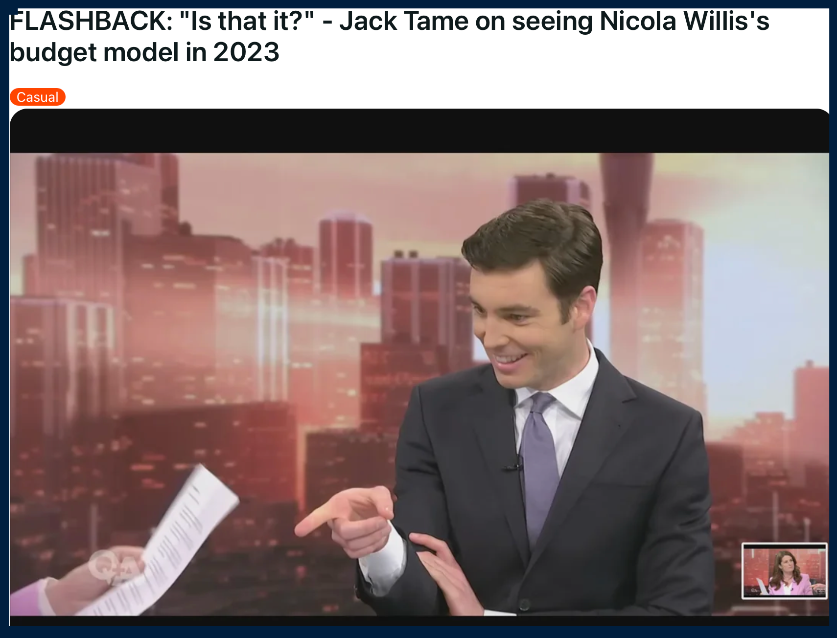 And talking of business cases, Bishop proved he had none for the roads they had selected, in a sit down with Jack Tame a few months ago.