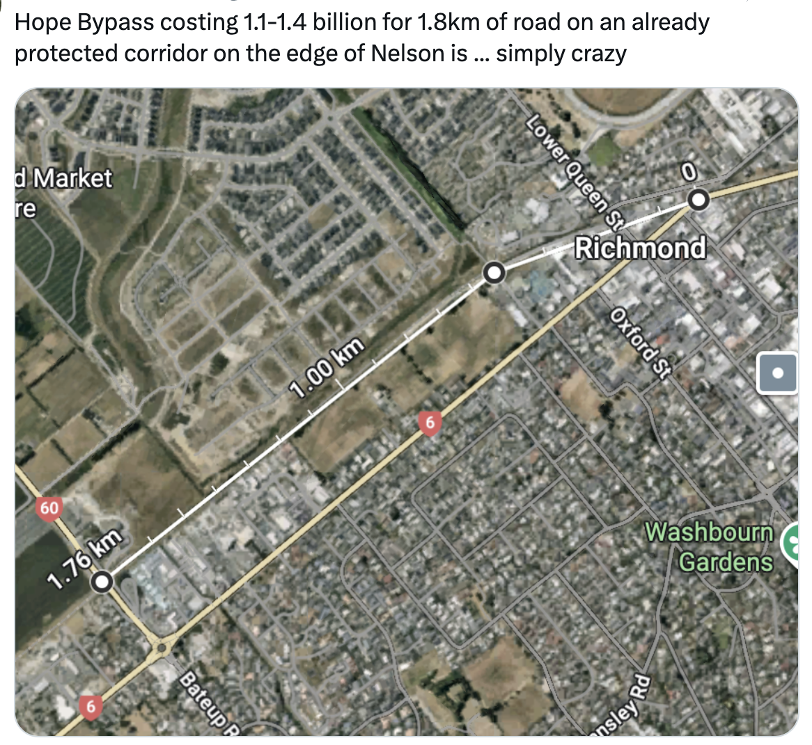Yesterday Chris Luxon and Bishop announced their commitment to spend $1.2 billion to commence major works on “roads of national significance”. Their overall plans are much larger than that - equating to about $62 billion of roading plans without any funding sources under them.