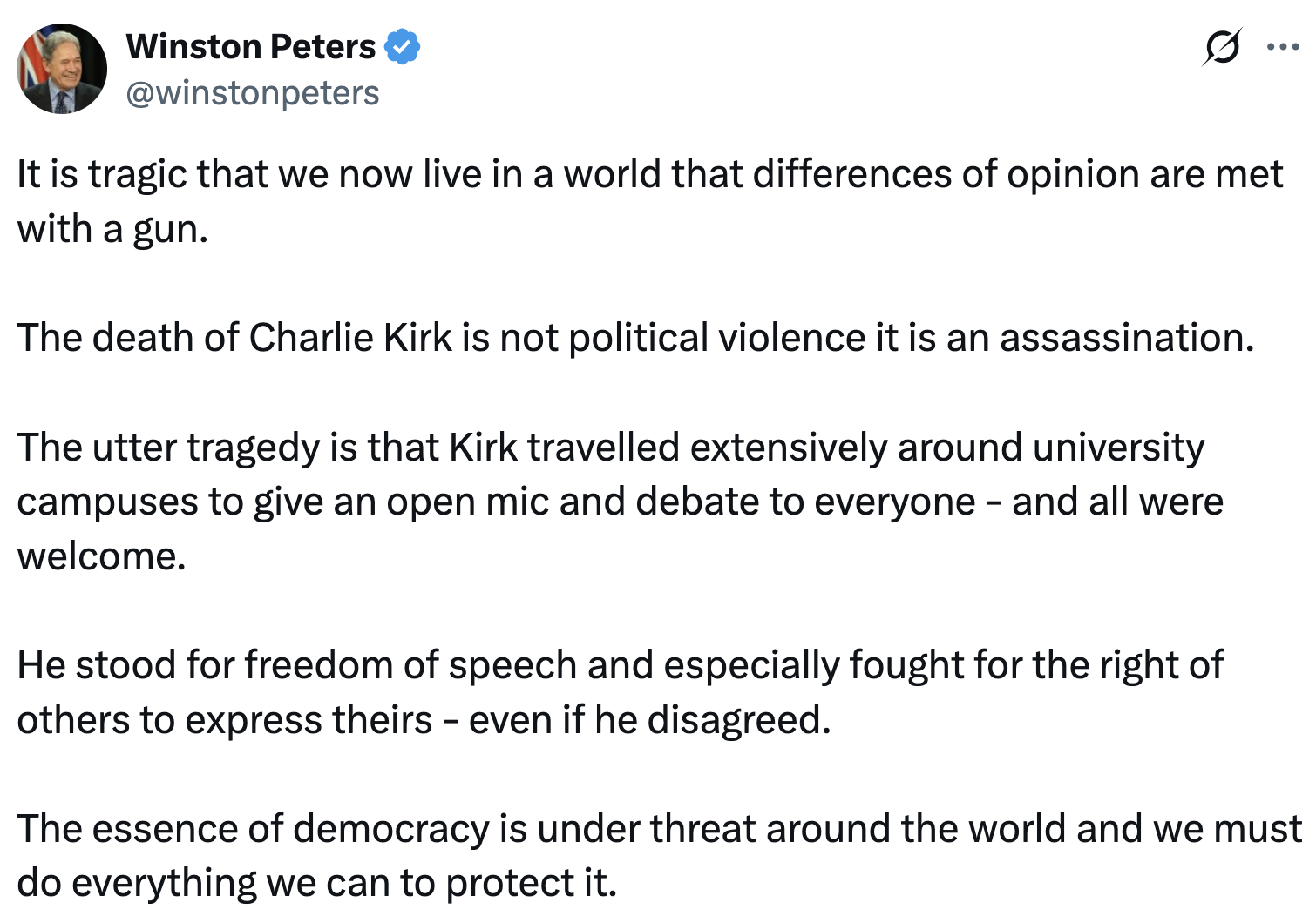 And again it’s not that Kirk’s death didn’t matter, - it’s regrettable - nor that anyone disagrees with the message that political violence is unacceptable - it’s not - it’s that we never see the same for others. And we never saw this type of American politics immersion so clearly and deeply thrust into this country - nor the attempt to sow America’s culture and politics into our own.