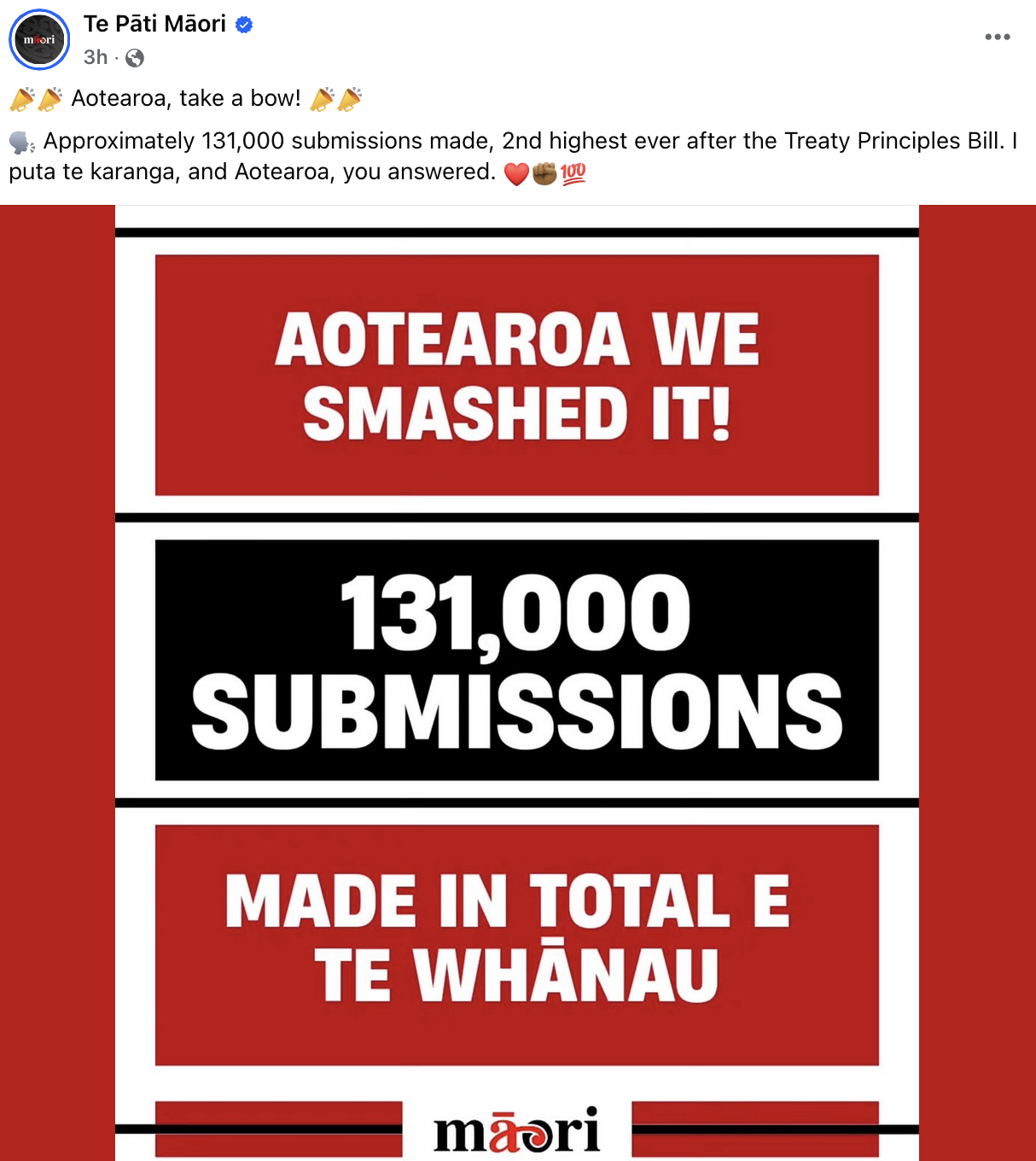 Te Pāti Māori were the first to publicly report the # of submissions received tonight.