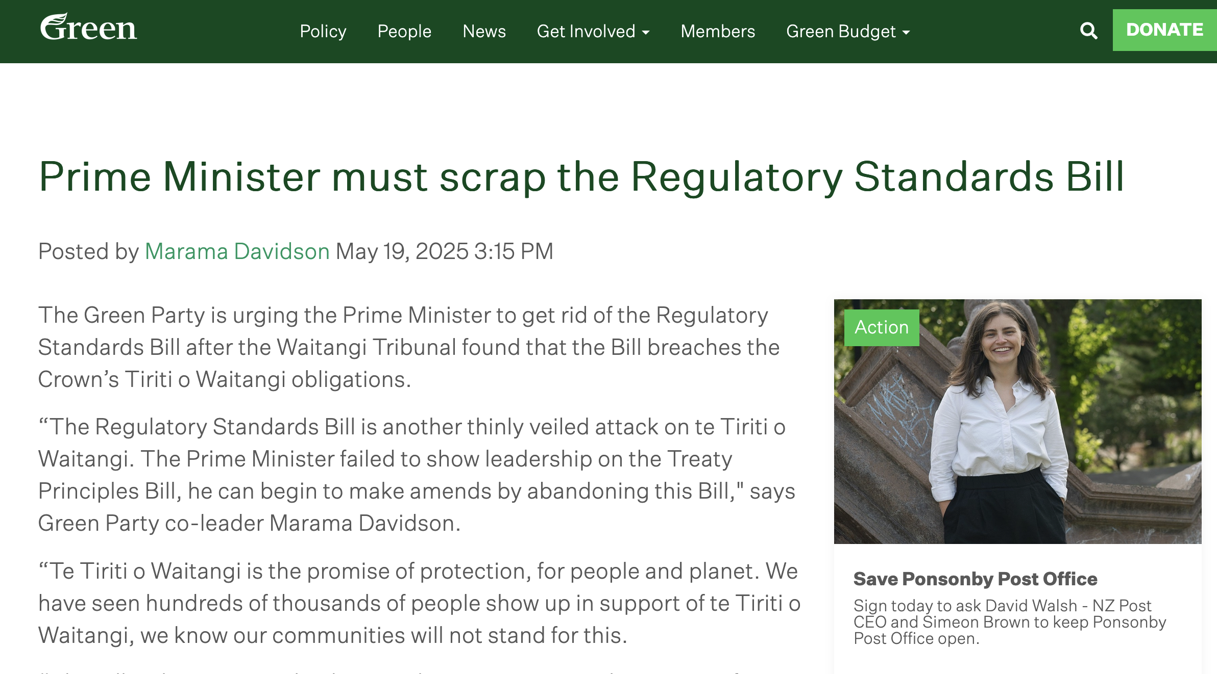 The Green Party has opposed the Regulatory Standards Bill from the start.