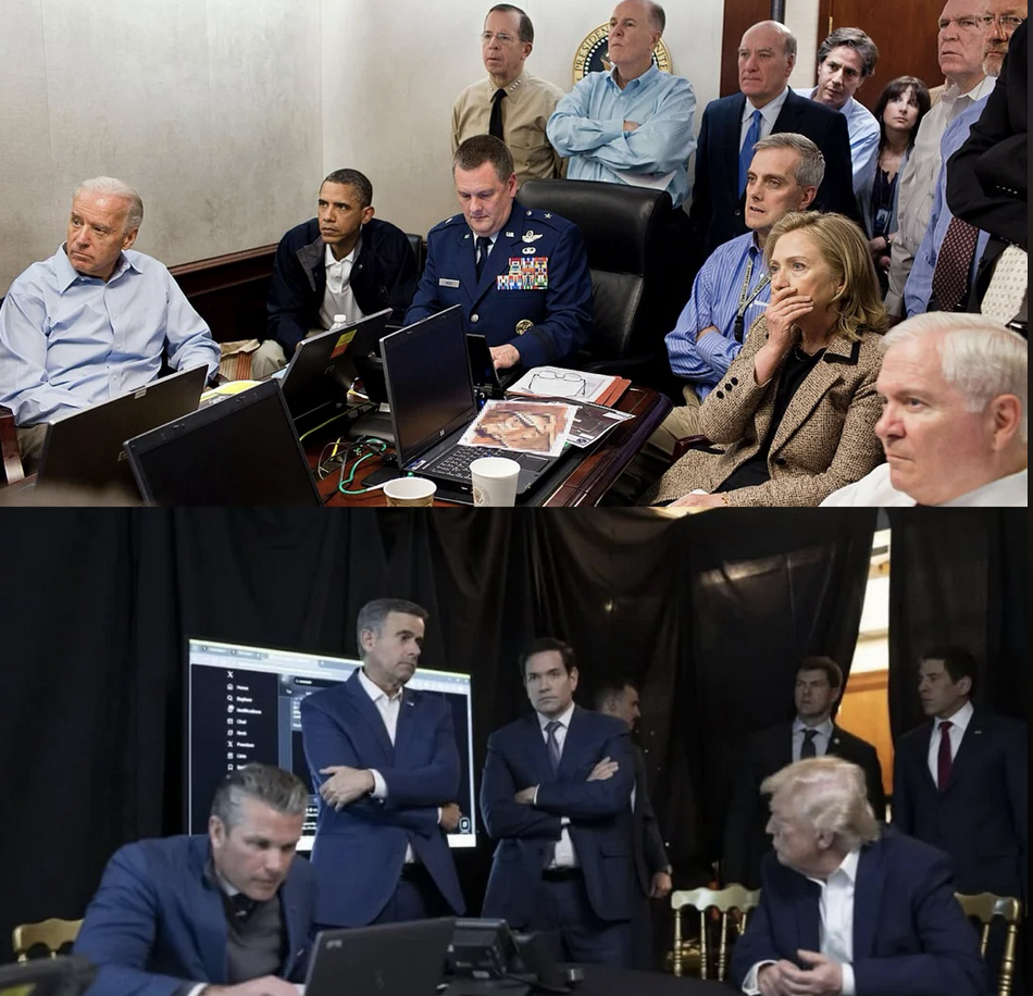 A comparison of the situation room between the Obama Bin Laden mission in 2011 and the Trump Administration Venezuala hit in 2025 reveals a number of stark differences: