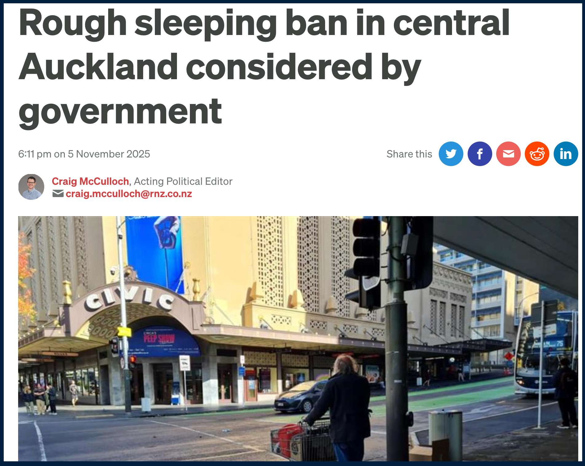 New Plymouth chronic homelessness is up over 50%, and there were 40% more rough sleepers recorded in Wellington in late 2024 and another 23% spike this year.